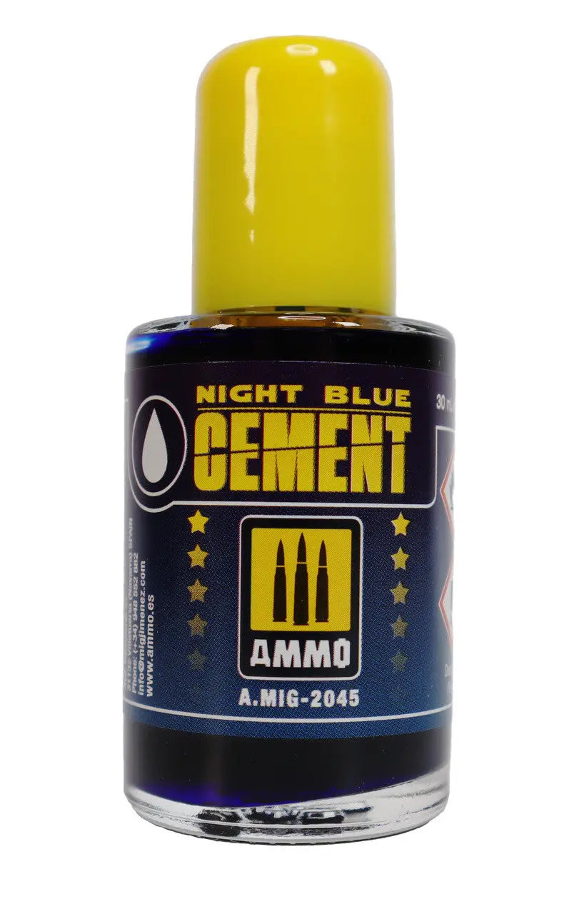 Blue-colour extra-thin cement for use in assembling plastic scale models.