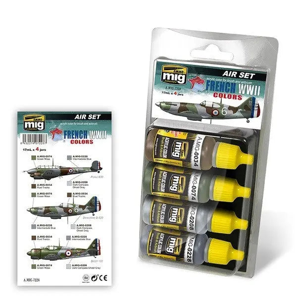 High-quality acrylic paint set includes all 4 colours used to accurately apply the camouflage for French aircraft during World War II, including Free French and Vichy French schemes. These references are accurate for the Morane-Saulnier MS.406, Potez or the well-known Dewoitine D.520 among others.