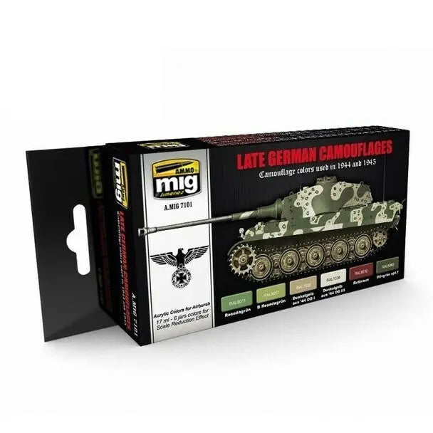 In late 1944, the German army introduced new rules and new variants in the colors used for painting their vehicles. With this set modellers can paint German late war tanks without complex mixtures thanks to our extensive historical research. All products are acrylic and are formulated for maximum performance both with brush or airbrush and the Scale Effect Reduction will allow us to apply the correct color on our models. Water soluble, odorless and non-toxic. Shake well before each use. We recommend MIG -2000 Acrylic Thinner for a correct thinning. Dries completely in 24 hours.