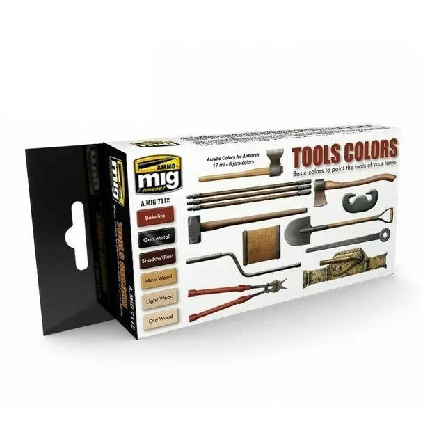 Acrylic set for painting the wooden handles of tools other types of wooden finishes. The set includes three wooden tones, one metallic paint and Bakelite color as used on some tools, such as German WWII shears. Finally, the set includes a helpful dark brown color that can be used to create shadows and grain on wood and rust on rust metal parts. All products are acrylic and are formulated for maximum performance both with brush or airbrush with the Scale Effect Reduction, which allows us to apply the correct color on our models. Water soluble, odorless and non-toxic. Shake well before each use. We recommend MIG -2000 Acrylic Thinner for a correct thinning. Dries completely in 24 hours.