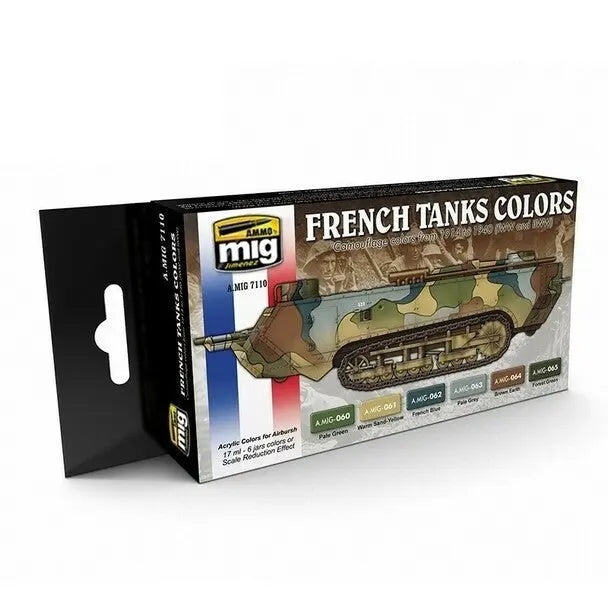 Acrylic water based paint set for painting French vehicles from 1916 to 1940. This set includes the six most common colors used by the French army with Scale Effect Reduction, which allows us to obtain the correct color on our scale models. All colors are acrylic and are formulated for maximum performance both with brush or airbrush. Shake well before each use. Each jar includes a stainless steel agitator for quick and convenient color mixture, and even consistent coverage. Water soluble, odorless, and non-toxic. We recommend MIG -2000 Acrylic Thinner for correct thinning. Dries completely in 24 hours. It includes: