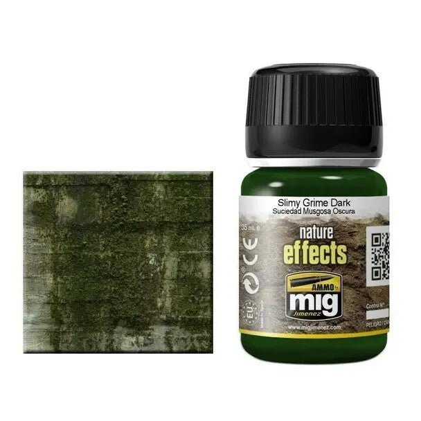 This dark green colored effect is perfect for creating fresh moss and slimy surfaces caused by dampness. Apply and fade with a clean brush moist with Enamel Thinner.