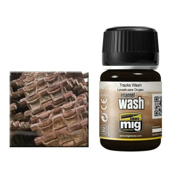 Wash for tracks. The prefect tone for rusty or dark tracks and other dark rust effects. Apply on details and remove excess with a clean brush moist with Enamel Thinner.