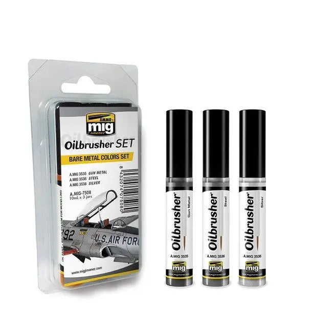 This unique range of Oilbrusher colors for painting and weathering offers the convenience and accuracy that you expect from AMMO by Mig Jimenez. This set contains three tones that will allow you to apply the most realistic insignia colors on your models, making the choice of colors simple.