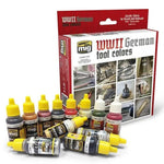 The most comprehensive set for painting all the small on-board gear and tools carried by WWII German vehicles. These items are of special interest to modelers due to the German practice of storing almost all the tools on the outside of their vehicles. In most cases the storage of tools and other equipment was standardized and presented a fairly uniform appearance in their colours and materials. The ideal selection of AMMO acrylics for all WWII German fans, never again wonder which colours to use on your Panzer III, Tiger I, or Sd.Kfz. 251 halftracks.